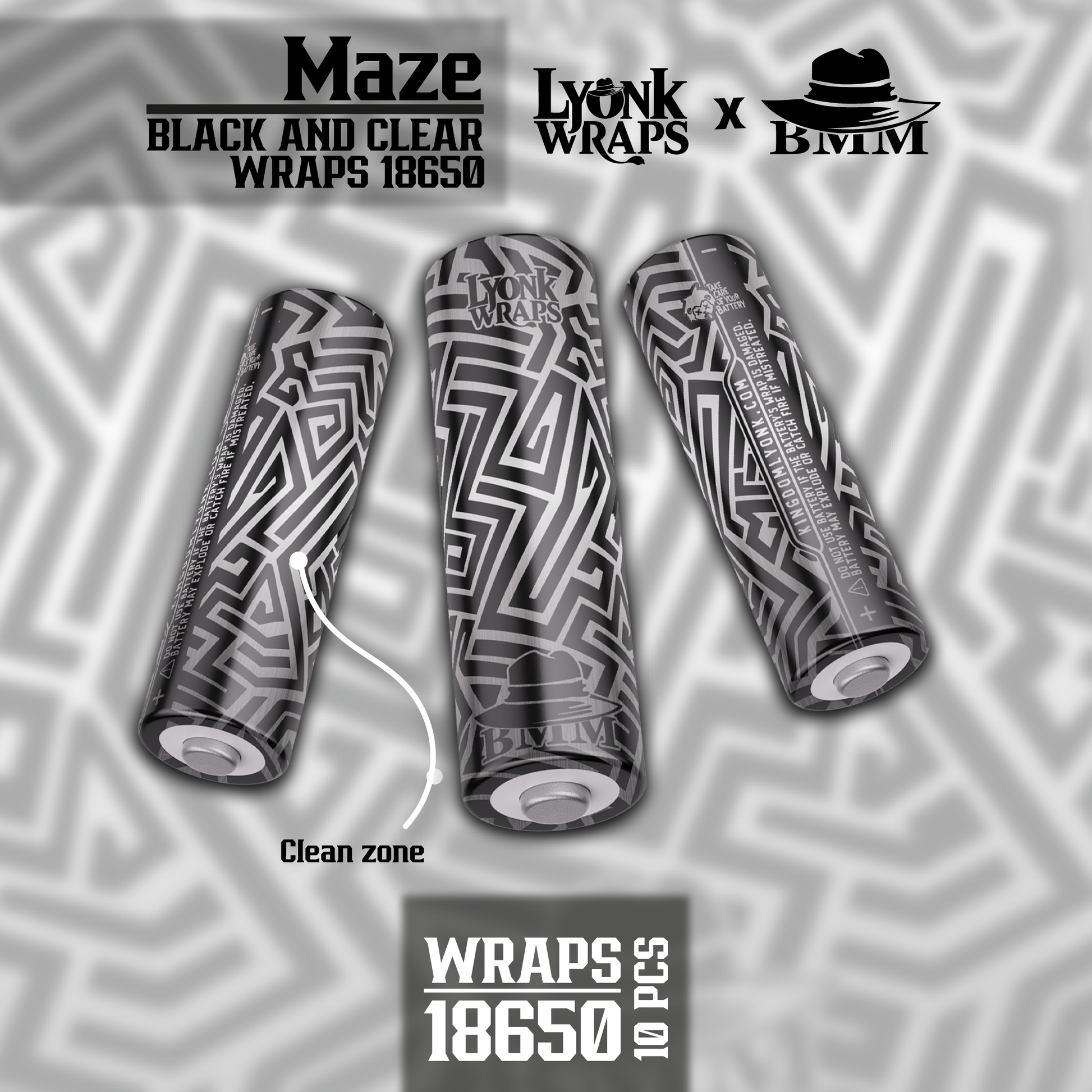 BMM Maze Black And Clear 18650 / 10 wraps in the package