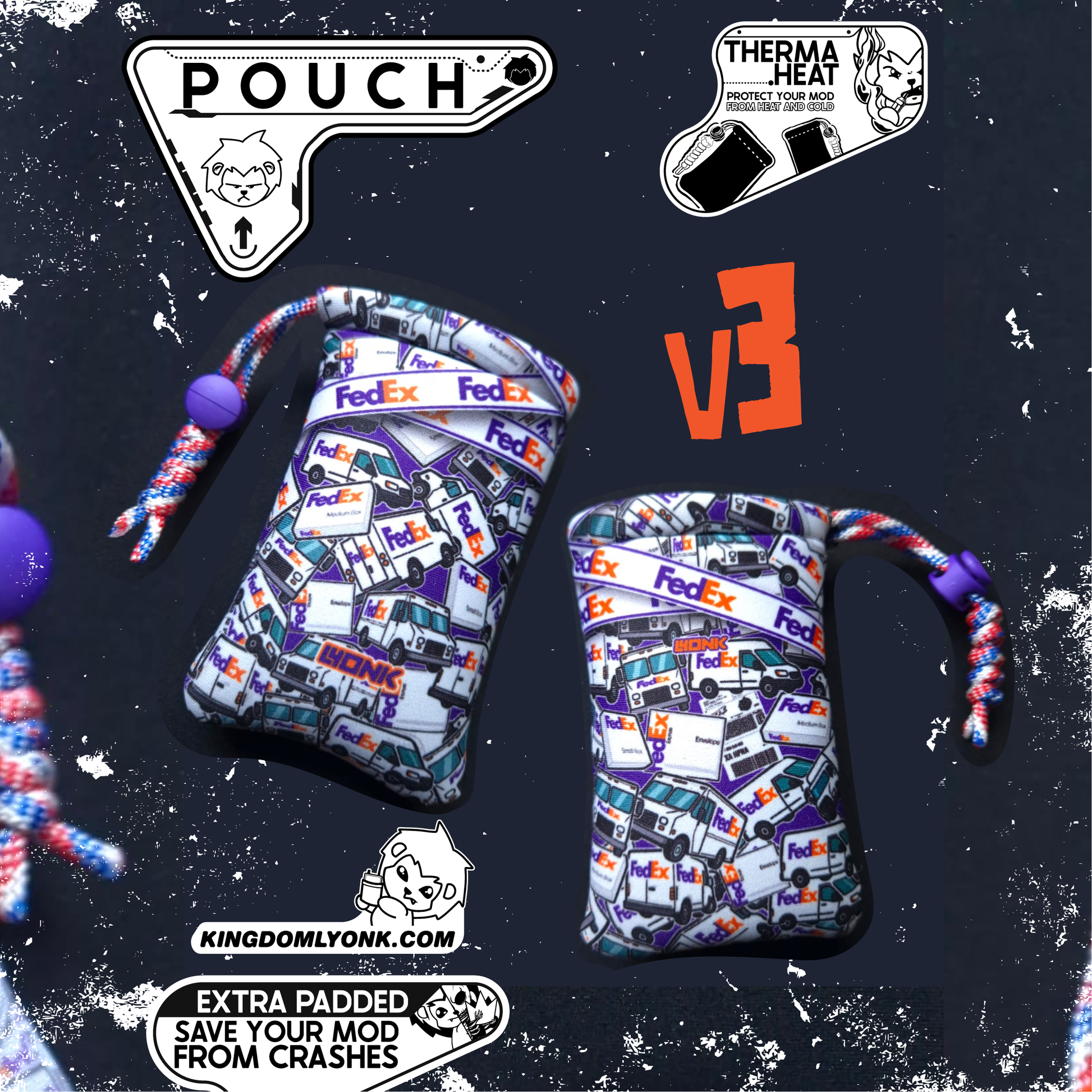 - 3mm High density - Fluorescent Lyonk Ornament Printed on Paracord - Extra Padding is added -ThermaHeat Thermal Lining is added.